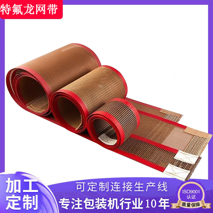 2、特氟龍網帶表面光滑細膩,加工薄粘合襯更佳;完善的抗彎曲疲勞性,經久耐用。